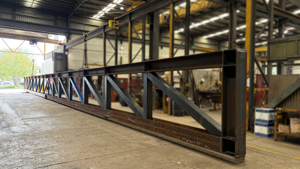 This project was crafted to create a clear span without any post obstructions in a particular section of a warehouse build. This transfer beam truss member was designed to carry the load of roof beams and sheeting without deflection to maintain the roof line aesthetics.